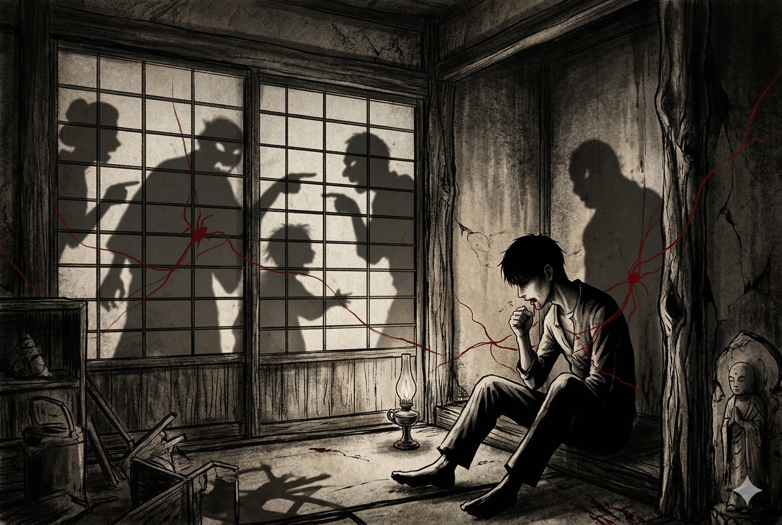 畳に散った赤黒い染みは、彼の中に潜んでいた「血の因果」が実体化した証であった。