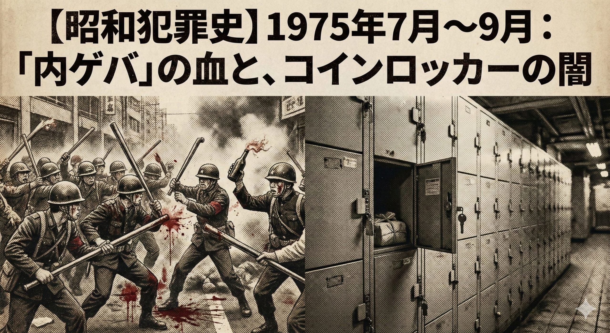 - 概要: 新左翼党派である「革労協(解放派)」と「革マル派」などの間で、血で血を洗う内部抗争(内ゲバ)が激化していた時期です。 6月に革労協の書記長が殺害されたことへの報復として、7月から9月にかけて、対立党派のメンバーを狙った襲撃が繰り返されました。 彼らは鉄パイプやバールで武装し、通学・通勤途中の学生や労働者の頭部を執拗に殴打して殺害しました。かつて理想を語り合った若者たちが、同じ言葉を話す人間を「殲滅対象」と呼び、物のように破壊する。まさに狂気の沙汰でした。