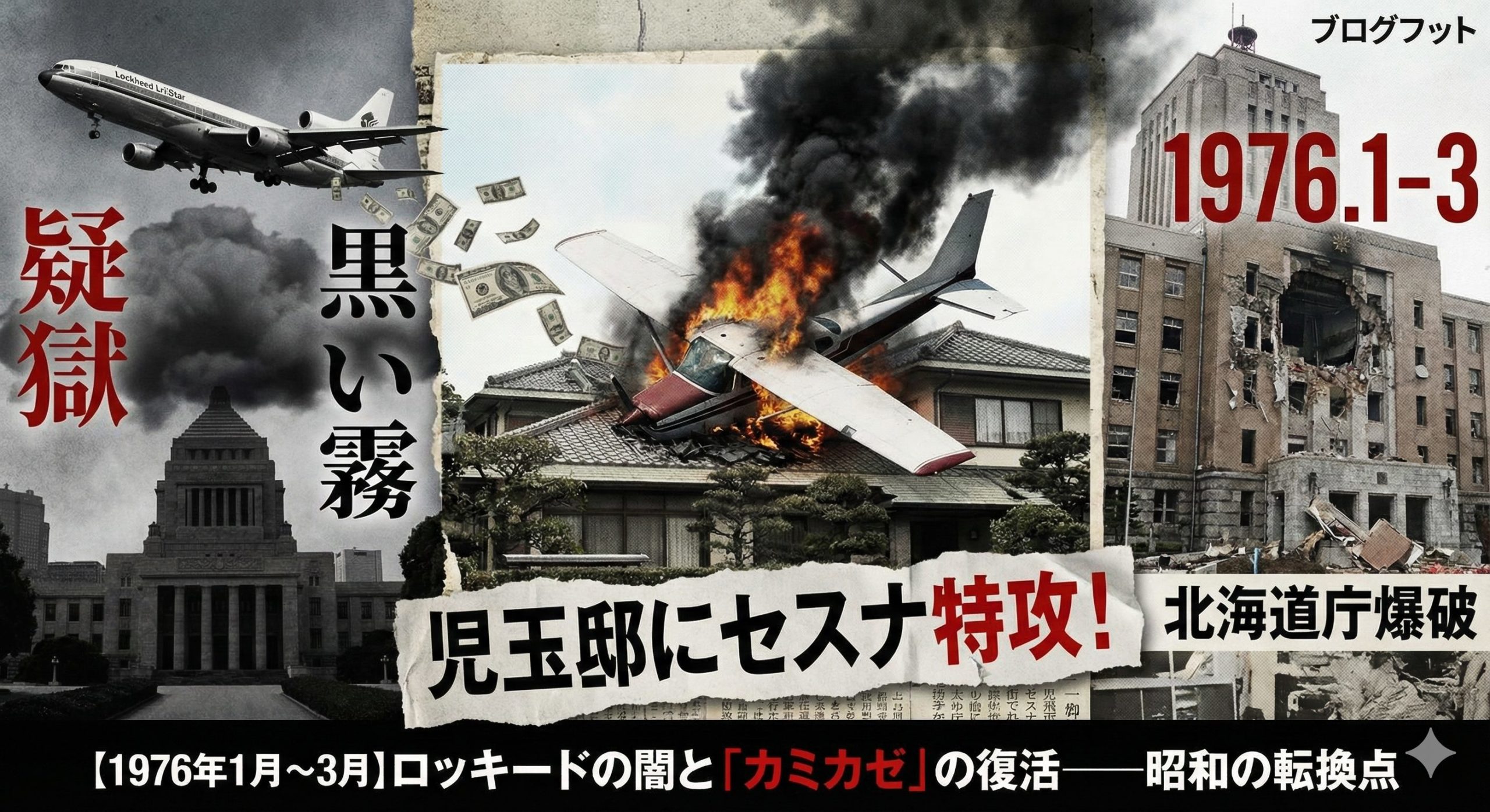 この時期の日本は、戦後最大の疑獄「ロッキード事件」の発覚により、政治とカネの闇が白日の下に晒されたタイミングでした。国会中継に国民の目が釘付けになる一方で、その社会不安に呼応するかのように、テロリズムや狂気的な行動が「爆発」した季節でもあります。 ポルノ俳優による特攻、企業幹部の不審死、そして無差別爆破。 昭和の膿が一気に噴出した、1976年春の事件ファイルをご覧ください。