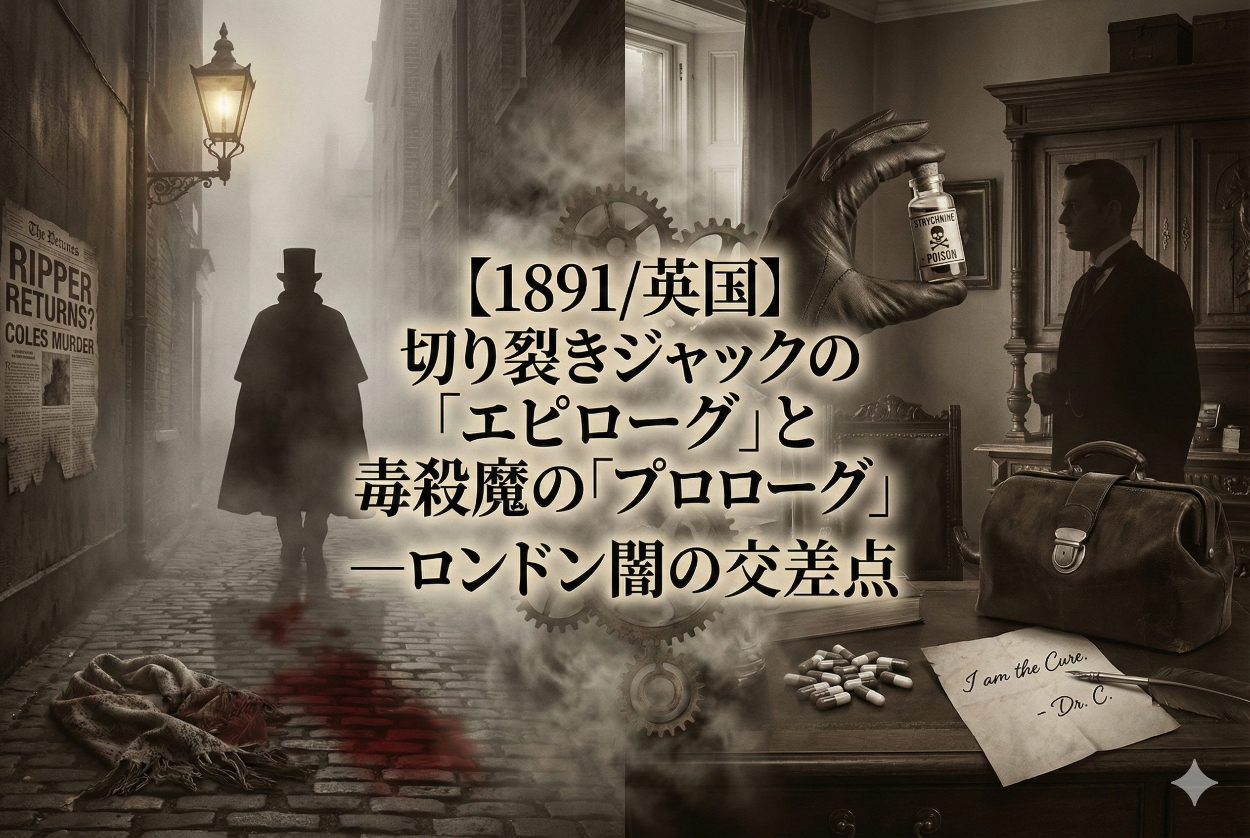 「それもそうだけど、犯人の**『心理的距離(サイコロジカル・ディスタンス)』**の違いよ。フランシス・コールズの犯人は、被害者に触れなければ殺せない距離にいた。でもクリームは、毒を飲ませて立ち去れば、安全圏から被害者が苦しむ時間を支配できる。……1891年は、犯罪が『肉体的な格闘』から、より知能的で冷徹な『ゲーム』へと進化(深化)し始めた年と言えるかもしれないわね」