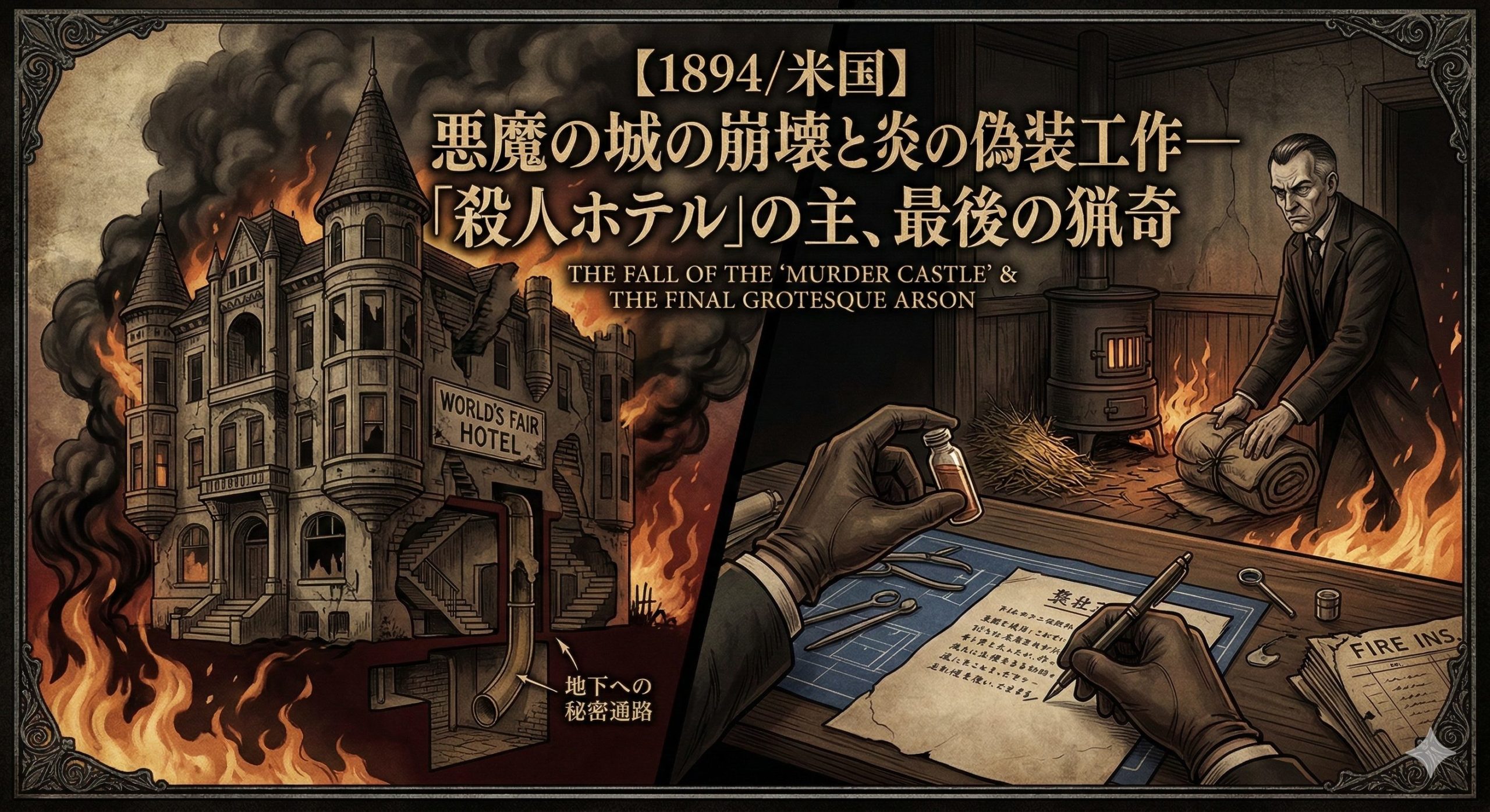 【1894/米国】悪魔の城の崩壊と炎の偽装工作―「殺人ホテル」の主、最後の猟奇